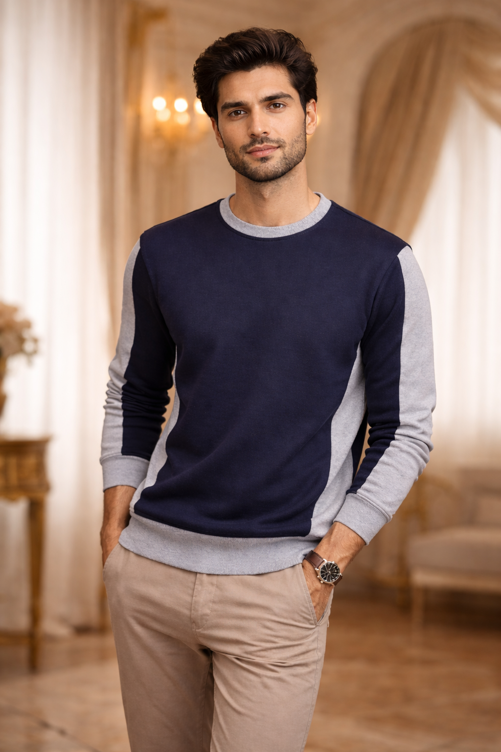 Men’s Navy Blue Color-Block Sweatshirt